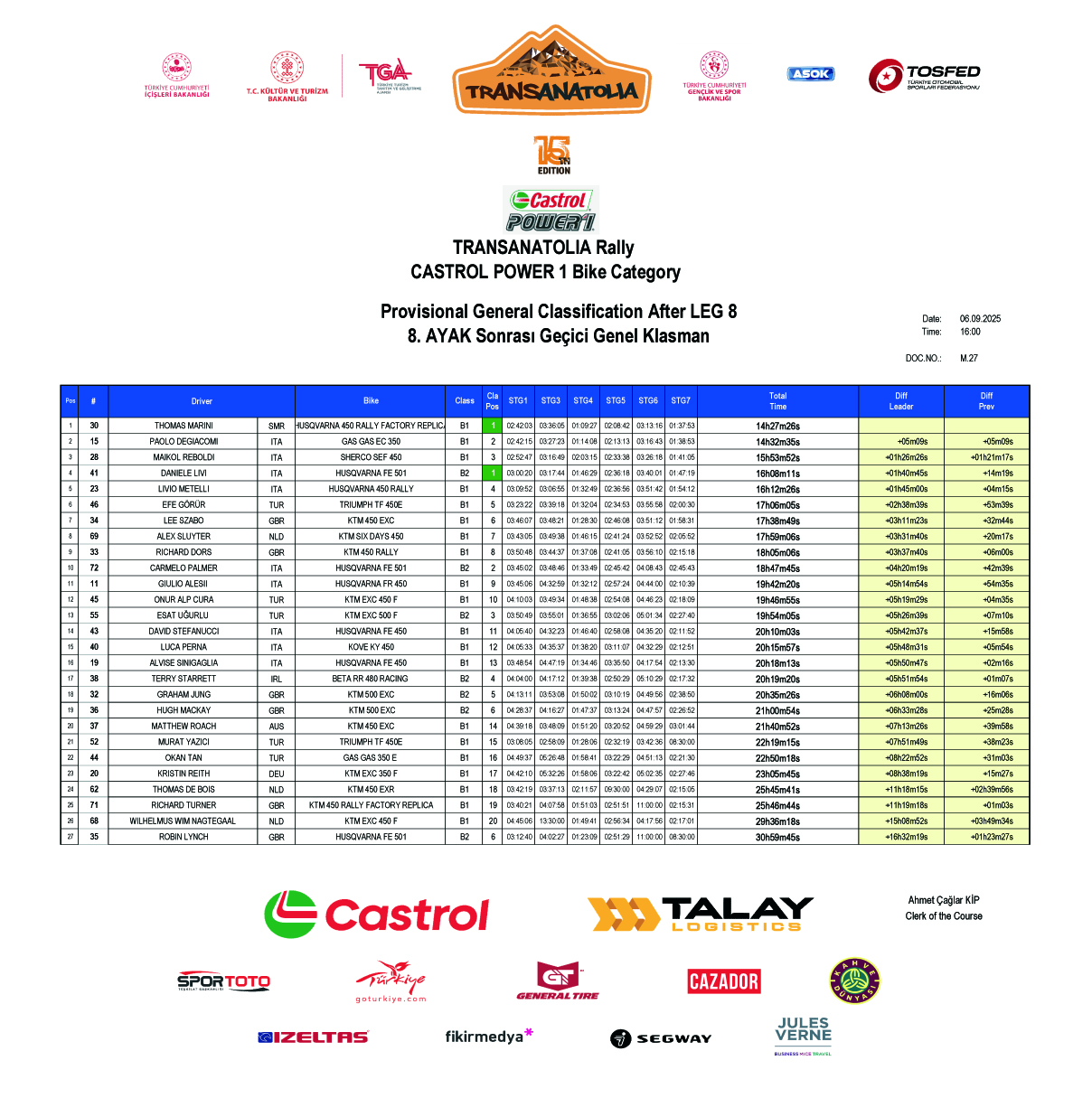 Tredicesima edizione - TransAnatolia 2023 CLASSIFICA FINALE BIKE